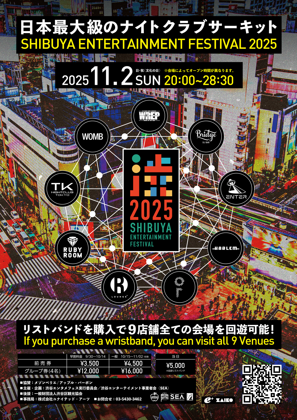 世界有数のグローバル都市“渋谷”にある多数のナイトクラブが、リストバンドひとつで行き来可能になる一夜!